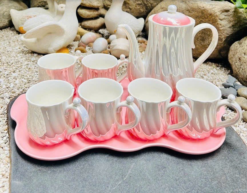 Màu sắc và họa tiết: Chọn sản phẩm có màu sắc tươi sáng, đều màu, không bị loang lổ. Các họa tiết trên tách và ấm trà nên được vẽ hoặc in đều đặn, không bị mờ nhòe hay lệch lạc.
